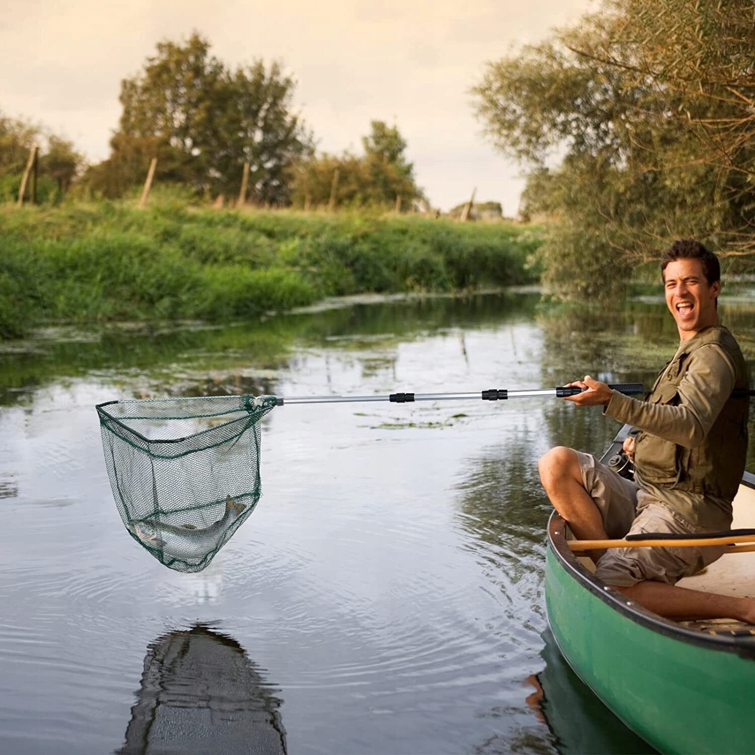 🐟【Широкий спектр применения】 Отличная сеть для начинающих и опытных рыболовов. Подходит для ловли в ручье, реке, озере, лодке и т. д., идеально подходит для ловли крупной рыбы, такой как карп, форель и т. д., а также мелких существ, таких как птицы, бабочки, стрекозы и т. д., для сбора водорослей с река.