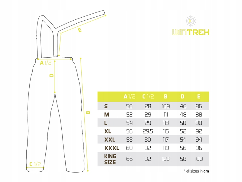 Брюки WinTREK имеют карманы на молнии с обеих сторон, при этом молнии пришиты из привлекательного желтого материала и покрыты водонепроницаемой окантовкой. На талии имеются регулируемые эластичные подтяжки, которые можно подогнать под свой рост или полностью расстегнуть. Сама талия имеет встроенную резинку, повышающую ее эластичность и растяжимость. Внутренняя часть выполнена из гладкого стеганого материала.