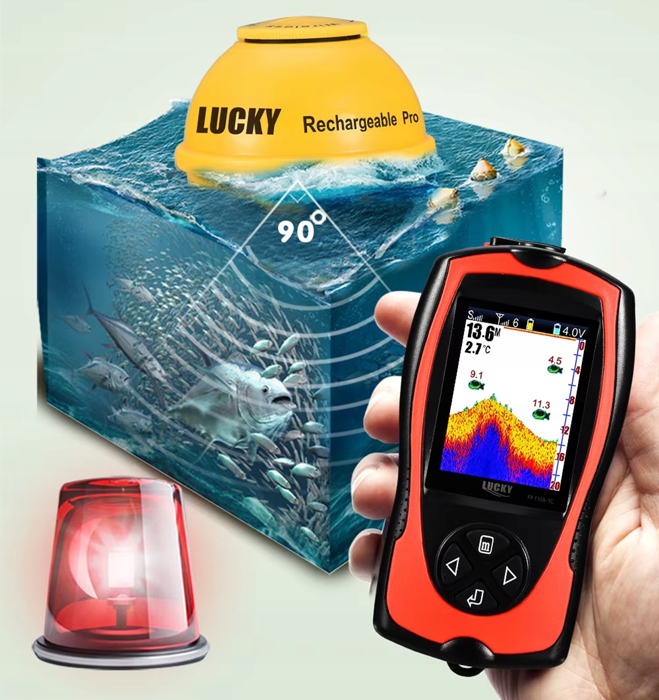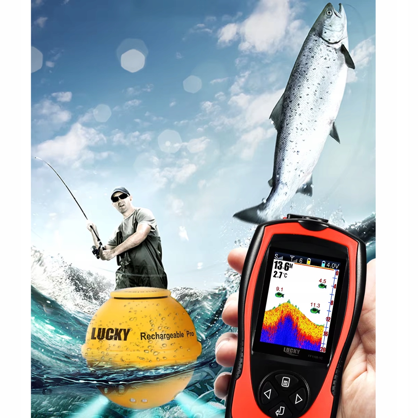 ⭐️Эхолот FF1108-1CWLA — беспроводной, глубина 45 м, цветной дисплей 2,4 дюйма, водонепроницаемый, дальность действия 150 м