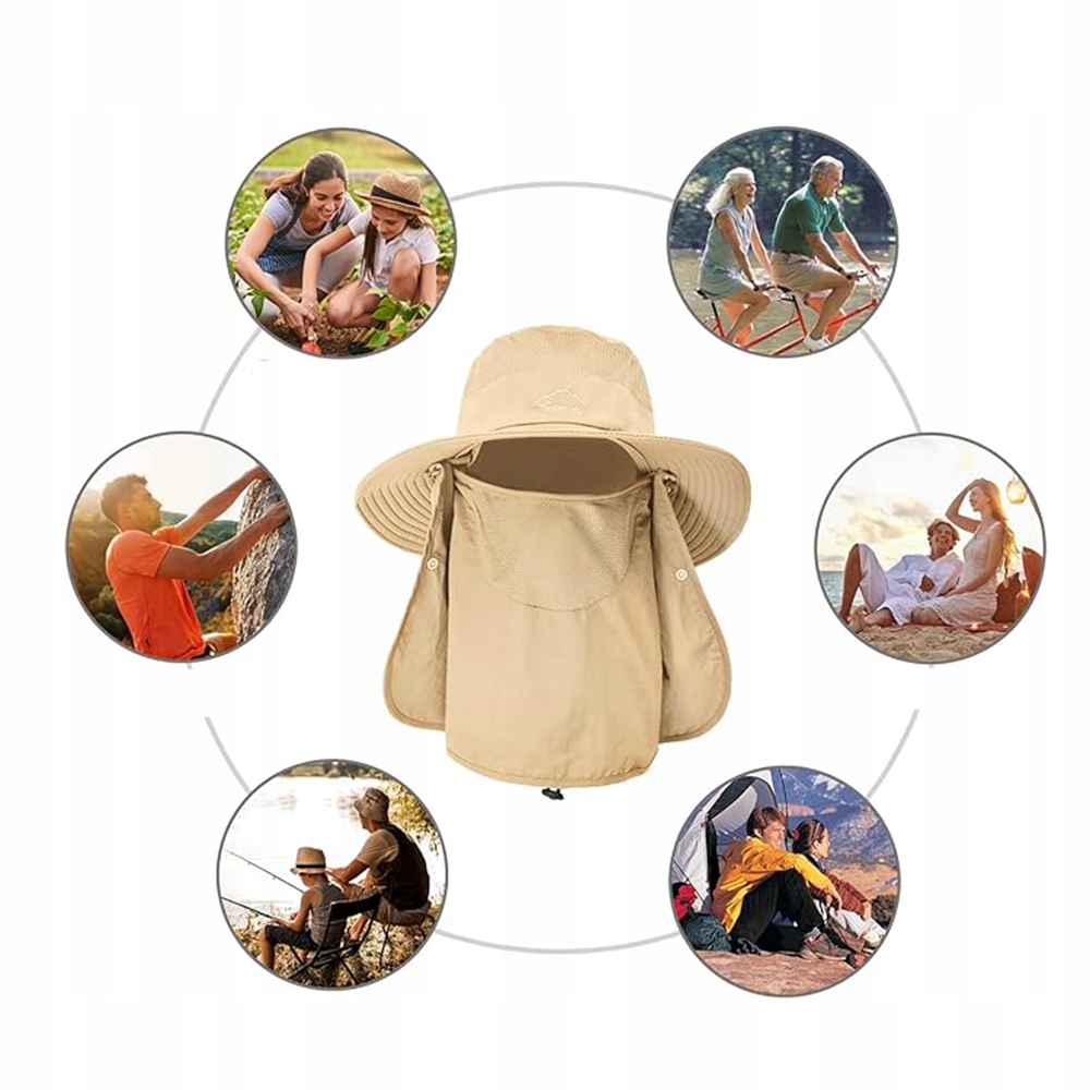 - 🌞 Защита и съемная конструкция: Широкополая шляпа от солнца с крышкой для лица и шеи (крышки съемные), защищает голову, лицо и шею от солнца. Регулируемый ремешок на подбородке обеспечивает комфорт даже при сильном ветре.