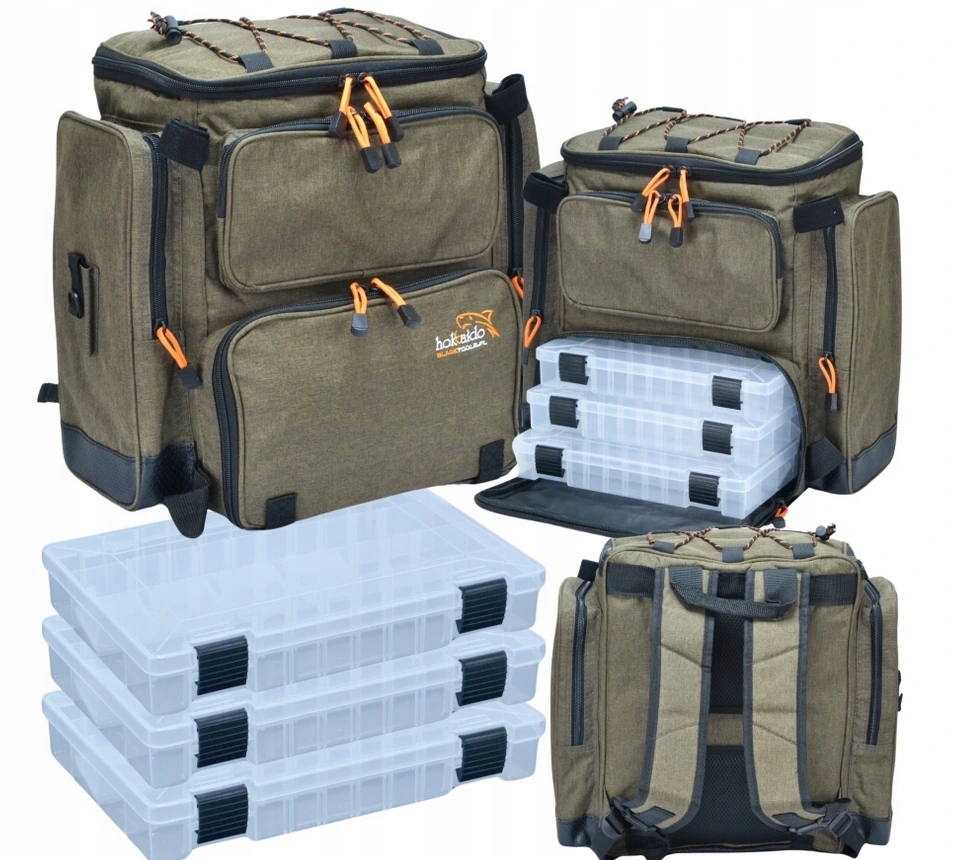 РЮКЗАК РЫБАЛКА СУМКА НА СПИНЕ 3 КОРОБКИ ЖЕСТКОЕ ДНО ХОККАДО 38/42/21 см