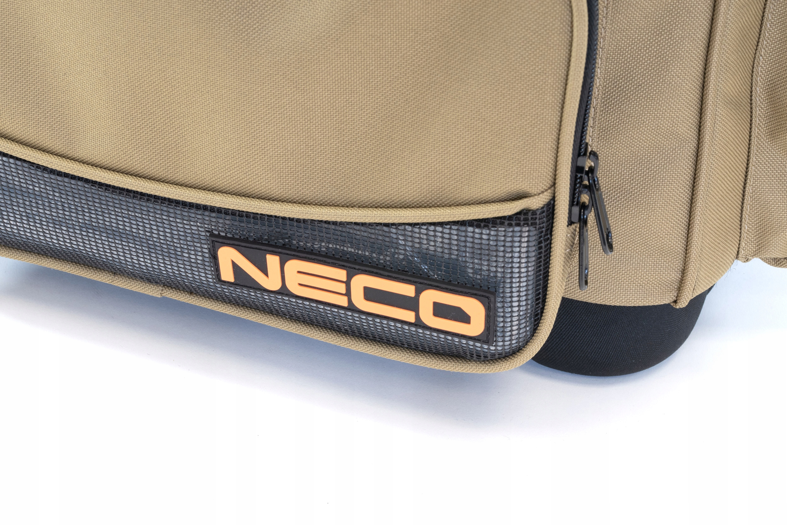 Удобная рыболовная сумка из водонепроницаемого неопрена. Имеет основное отделение объемом 20 литров, застегивающееся на молнию. Крышка имеет ребра жесткости по краям, как и боковые стороны сумки, а дно полностью жесткое. В крышке основного отделения имеется внутренний карман на молнии. В передней части сумки имеется карман, застегивающийся на молнию, с укрепленными краями крышки. По бокам два кармана на молнии с жесткими краями и крышками. Сумка имеет прочный регулируемый плечевой ремень и две лямки меньшего размера, позволяющие носить сумку в руках.