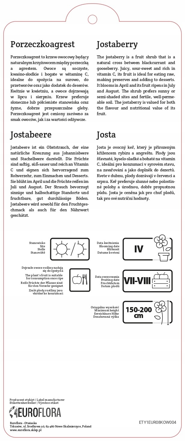 Просматривая «Рибес Нидиглария - Porzeczkoagrest», вы можете быть уверены, что данный товар из каталога «Этикетки и таблички» будет доставлен из Польши и проверен на целостность. В цене товара, указанной на сайте, учтена доставка из Польши. Внимание!!! Товары для Евросоюза, согласно законодательству стран Евросоюза, могут отличаться упаковкой или наполнением.