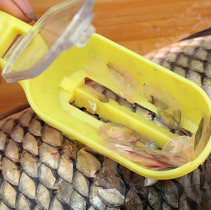Скребок с емкостью для чешуи – незаменимый аксессуар при приготовлении рыбы. Раковины собираются в контейнер и не падают на стол или пол. Инструмент значительно упрощает процесс приготовления свежей рыбы.