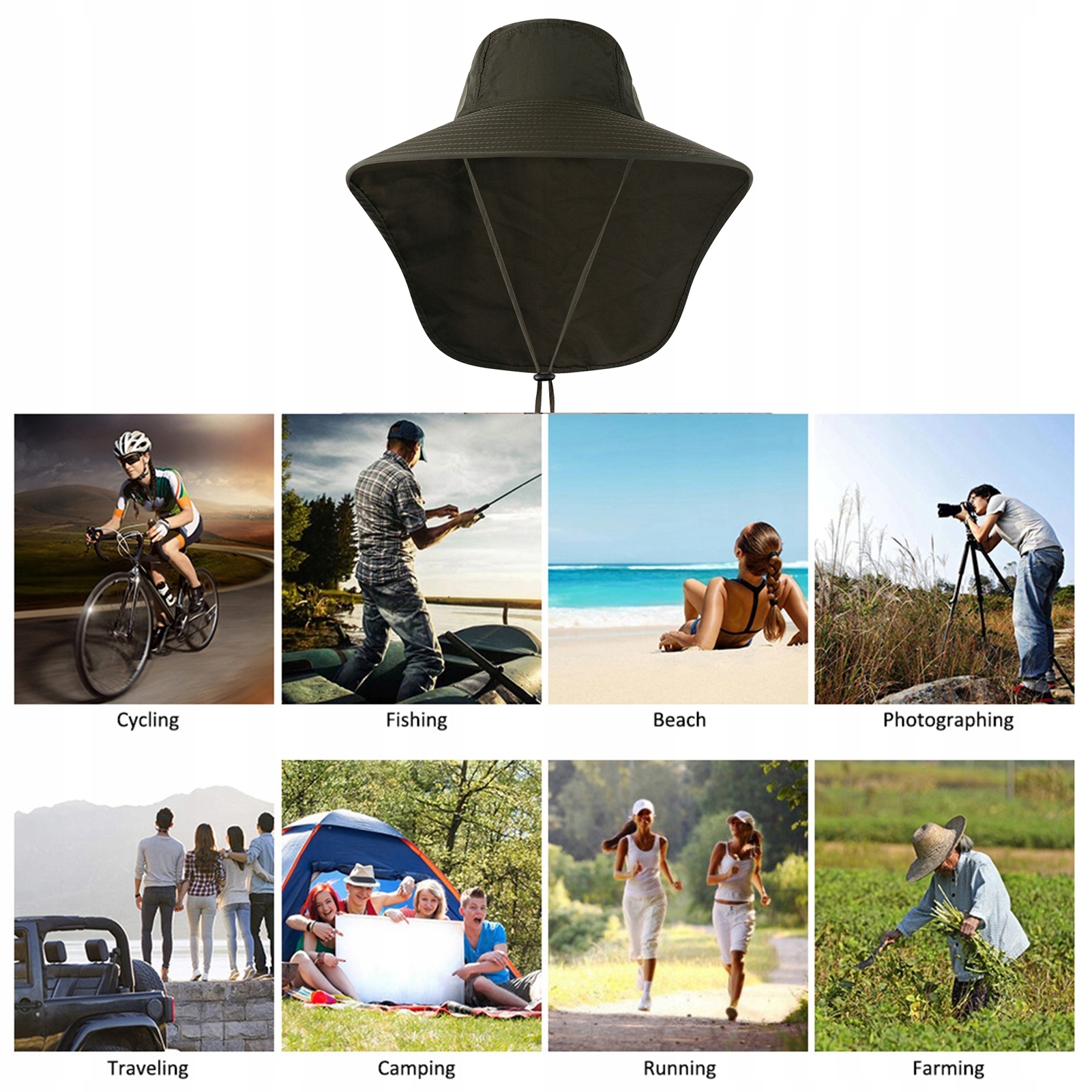 4. Произошло на широкой задней части и клапан, это остановит вас от горящего солнца и вредного ультрафиолета.