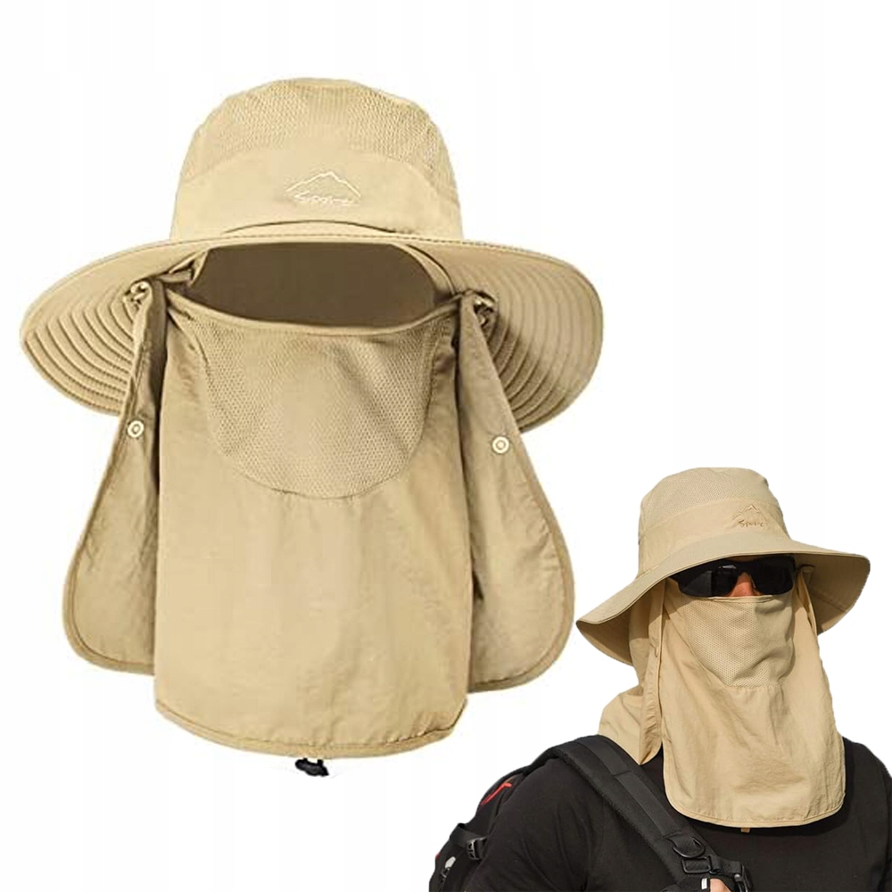 Рыбачная шляпа сложена с крышкой лица и защитой шеи хаки