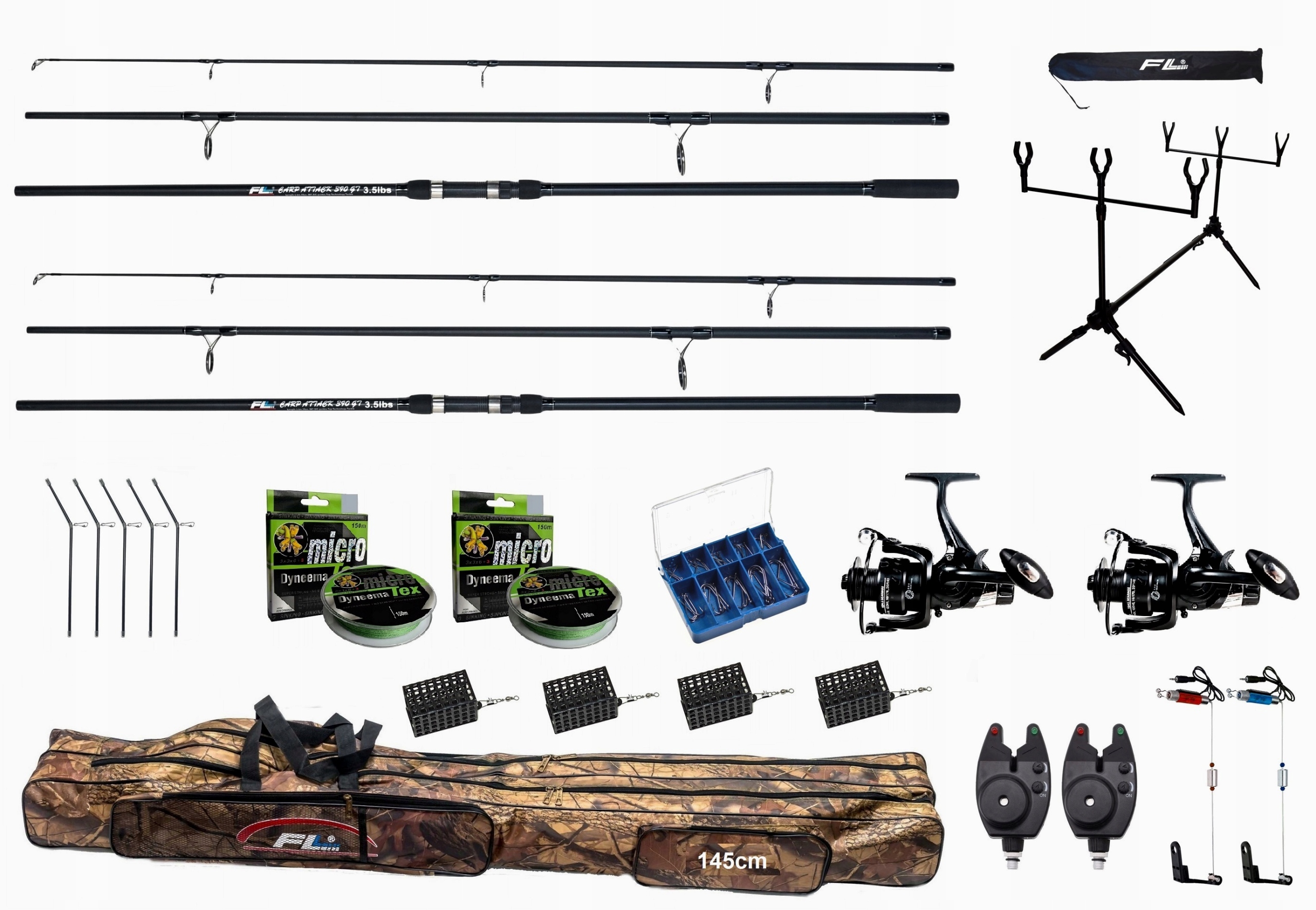 - 1x рыболовный чехол с 2 отделениями 145см