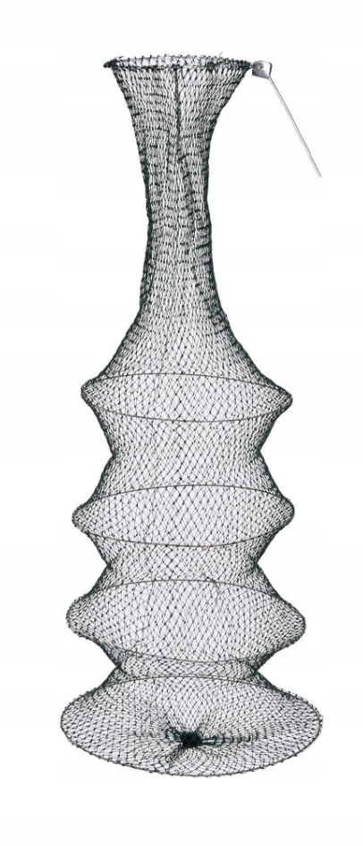 Рыболовная сеть, 100 г. длиной см, складки состоят из 5 обручей, один более узкий вверху, около 22 см, и четыре более широких внизу, около 36 см.