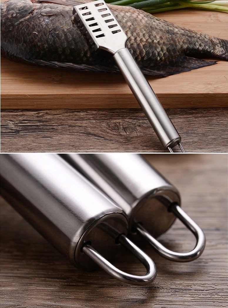 - Рукоятка, как и рабочая часть, изготовлена из металла. он очень удобен и хорошо лежит в руке. Только благодаря этому скребок для рыбы удобен, а снятие чешуи происходит плавно и без лишних усилий.