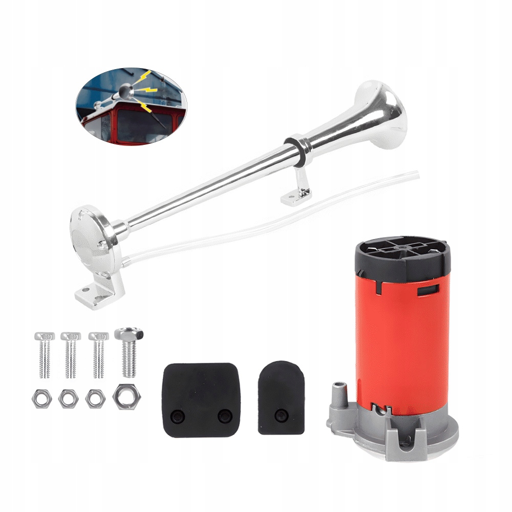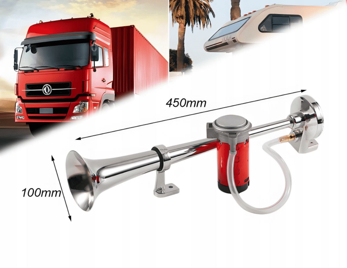 Пневматическая система не требуется. Легкая установка, блестящая хромированная отделка и настроенный звук рога поезда.