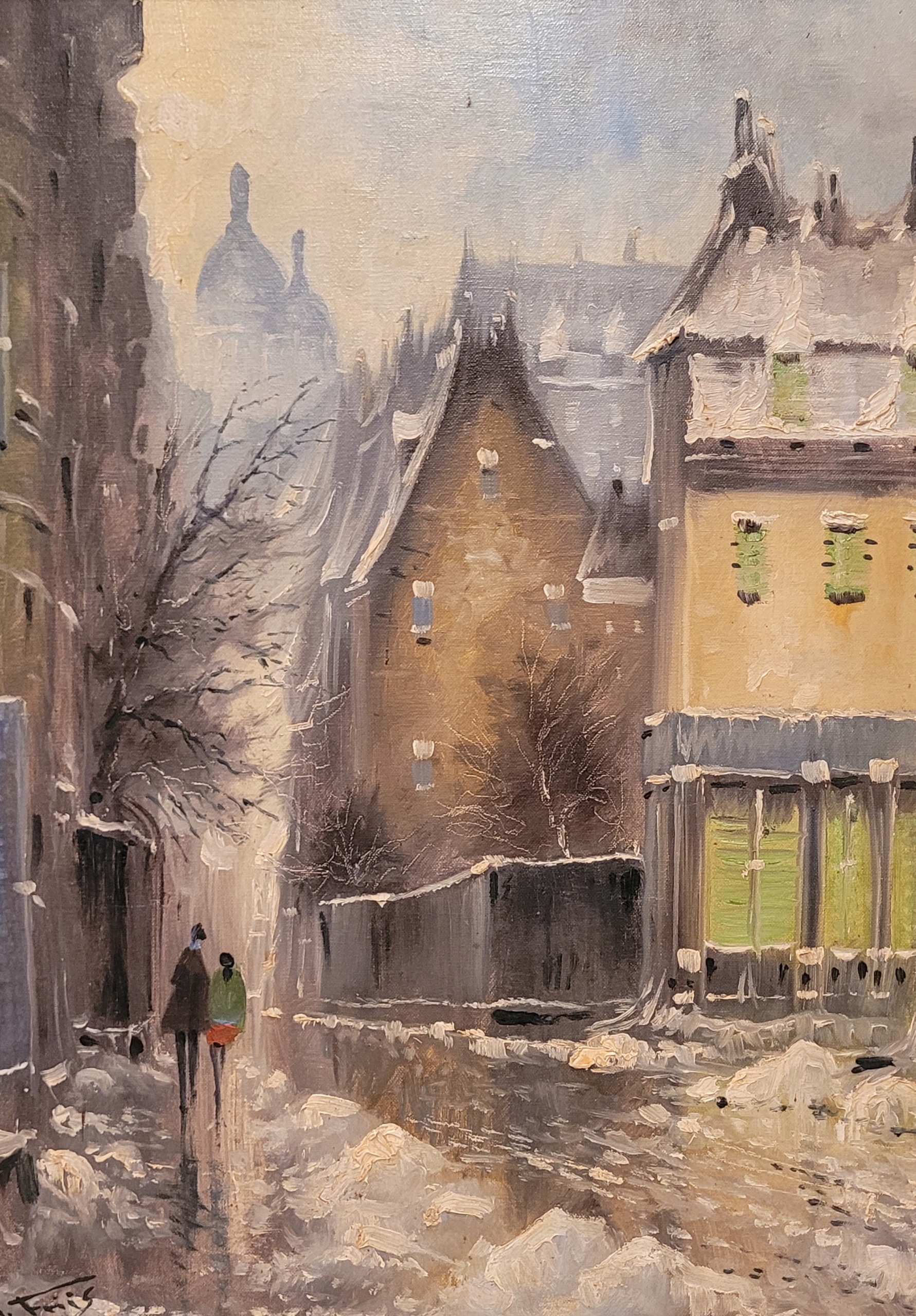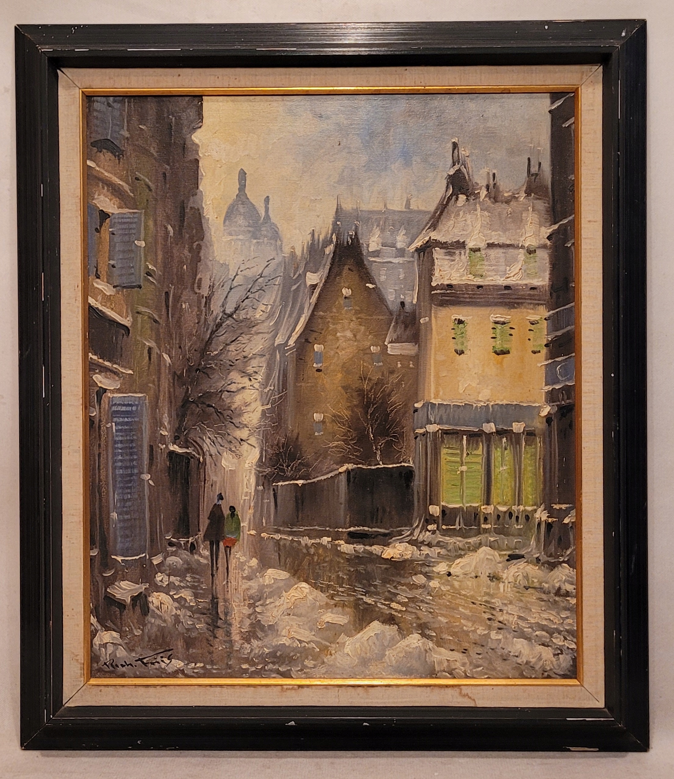 РИЧАРД ФРИИС ( 1924 - ) - "УЛИЧНАЯ СЦЕНА", прекрасная картина маслом.