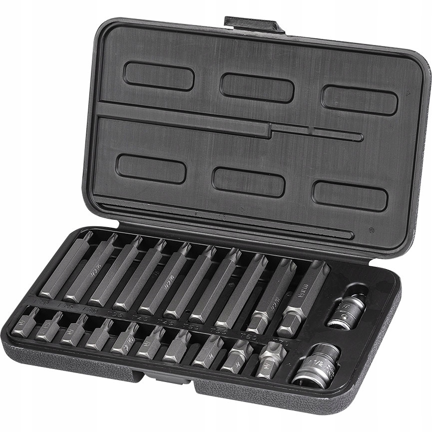 - Набор 22 - элементарный набор, который включает, среди прочего: длинные биты Torx, короткие биты Torx, две части ручек ½ "и 3/8".