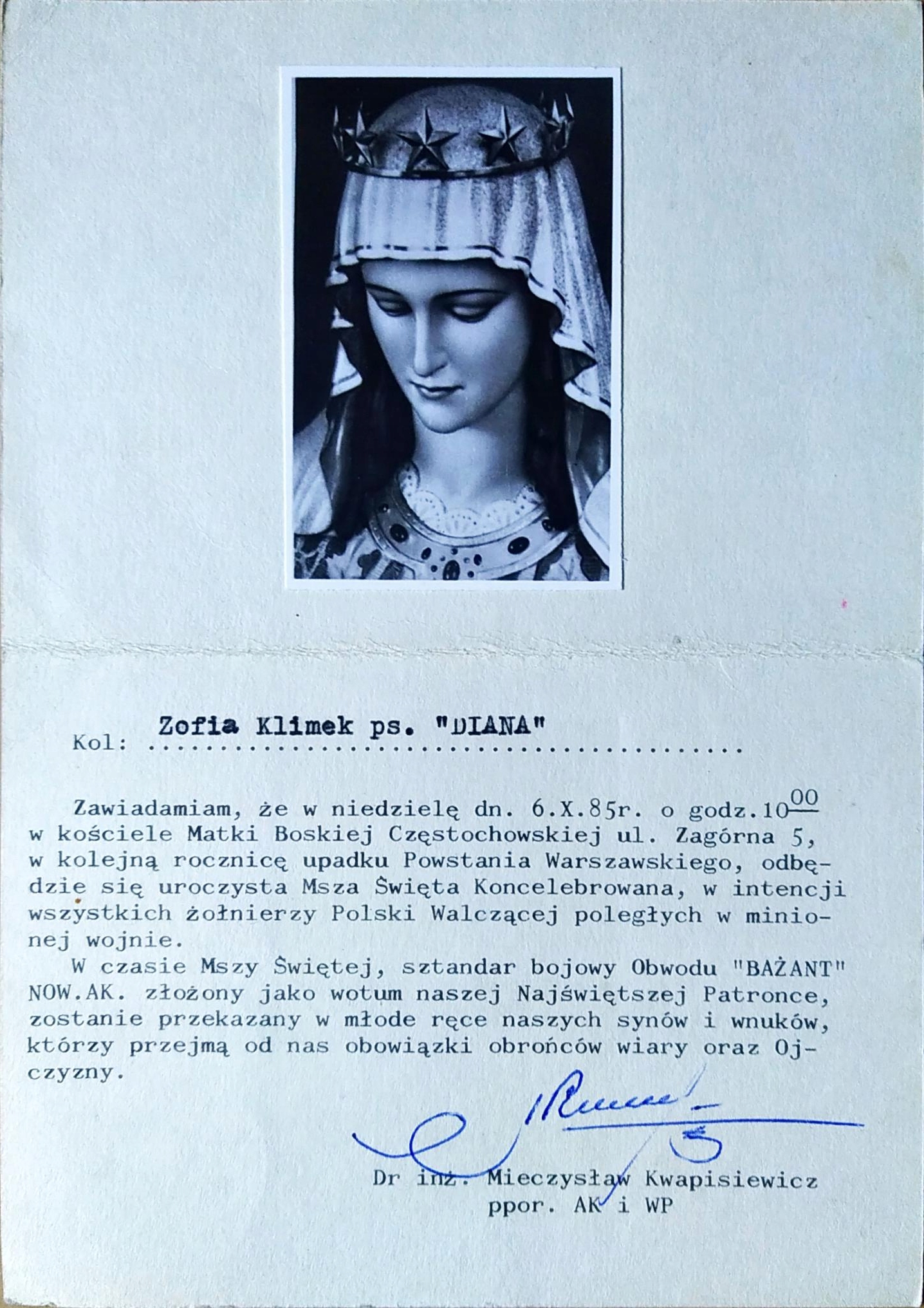 РІЧНИЦЯ ПАДІННЯ ВАРШАВСЬКОГО ПОВСТАННЯ 1985 РОКУ