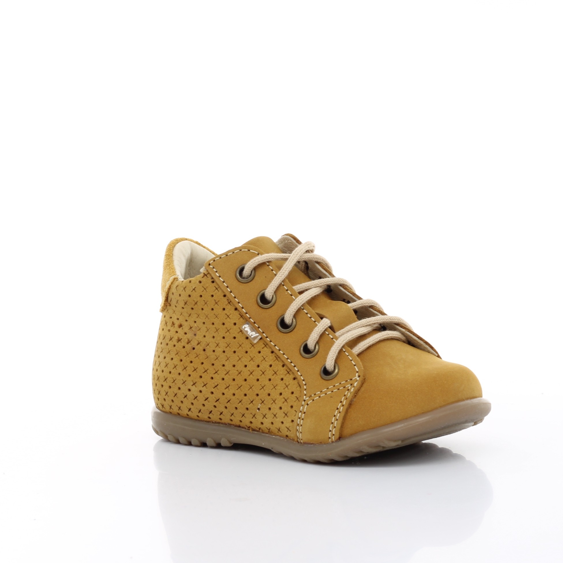 Туфли горчичного цвета – идеальны для обучения ходьбе, изготовлены из натуральной кожи высочайшего качества. Обувь достаточно устойчива и гибка, внутренняя отделка выполнена из мягкой кожи, защищающей от истирания. Профилированная кожаная стелька - правильно формирует развитие стопы. Застежка регулируется шнурком. Они имеют широкий кончик, что дает свободу пальцам. Гибкая и нескользящая подошва.