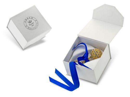 Наша погремушка представляет собой сложную отливку, изысканную в каждой детали, отполированную до блеска и подвергнутую сильной гальванической обработке (без возможность стирания покрытия) Позолота 24-каратным золотом на известном ювелирном заводе. Погремушка украшена вручную 155 сапфировыми цирконами.