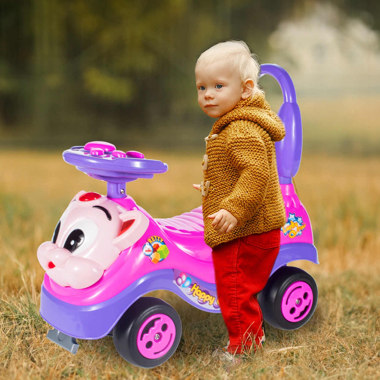 Толкач идеально подходит как для домашнего, так и для наружного использования. На руле есть звуковой сигнал, который издает звук при нажатии.