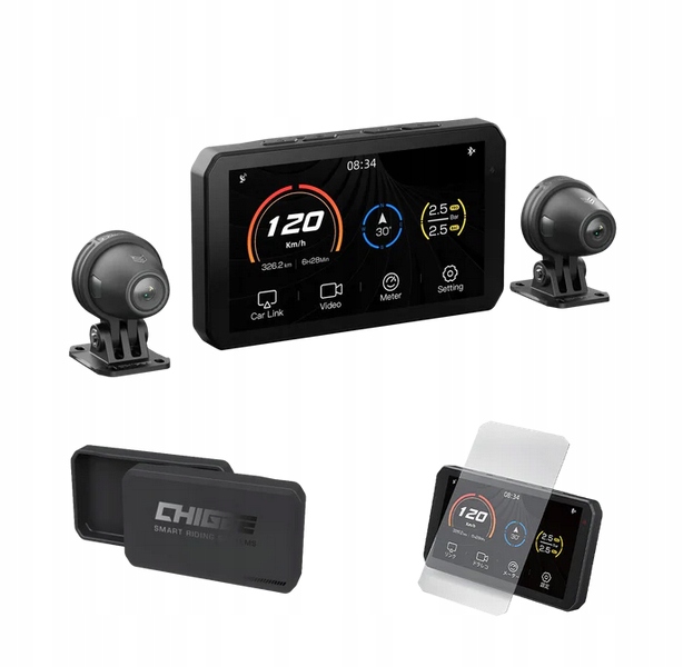 Мотовидеорегистратор CHIGEE с двумя камерами AIO-5 Lite Apple CarPlay Android Auto RIDER PACK