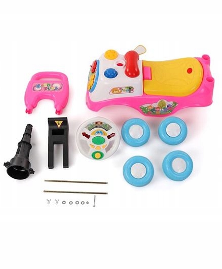 На коляске, толкаче и игрушечной машинке имеются наклейки, имитирующие автомобильные часы, а рисунок на сиденье имитирует кожаные сиденья.