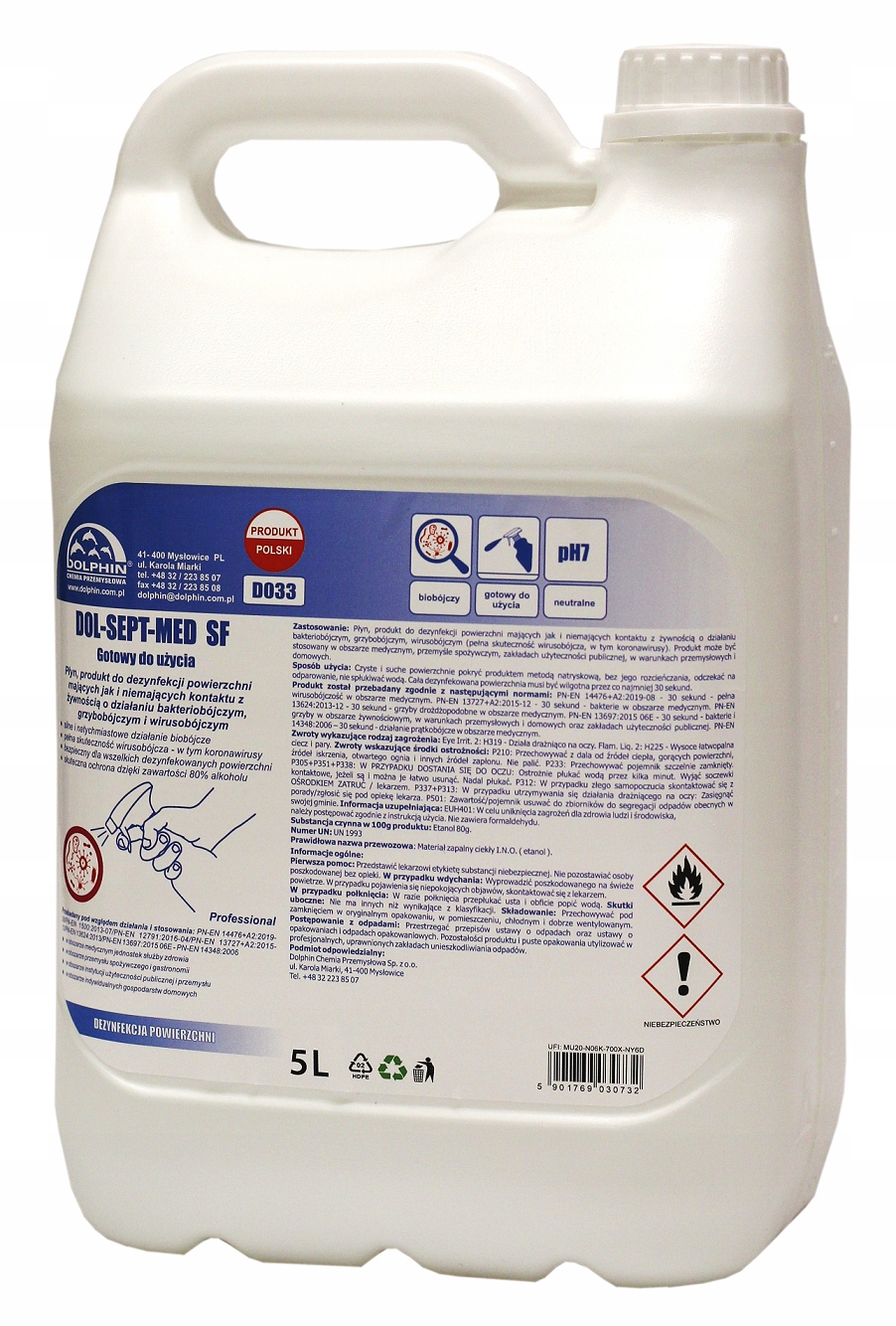 Жидкость для ДЕЗИНФЕКЦИИ ПОВЕРХНОСТЕЙ: в медицинской сфере, в пищевой промышленности, общественном питании, на предприятиях коммунального хозяйства. Идеально подходит для промышленного и домашнего использования. Содержание 80% активного вещества. ДОЛ-СЕПТ-МЕД СФ 5л