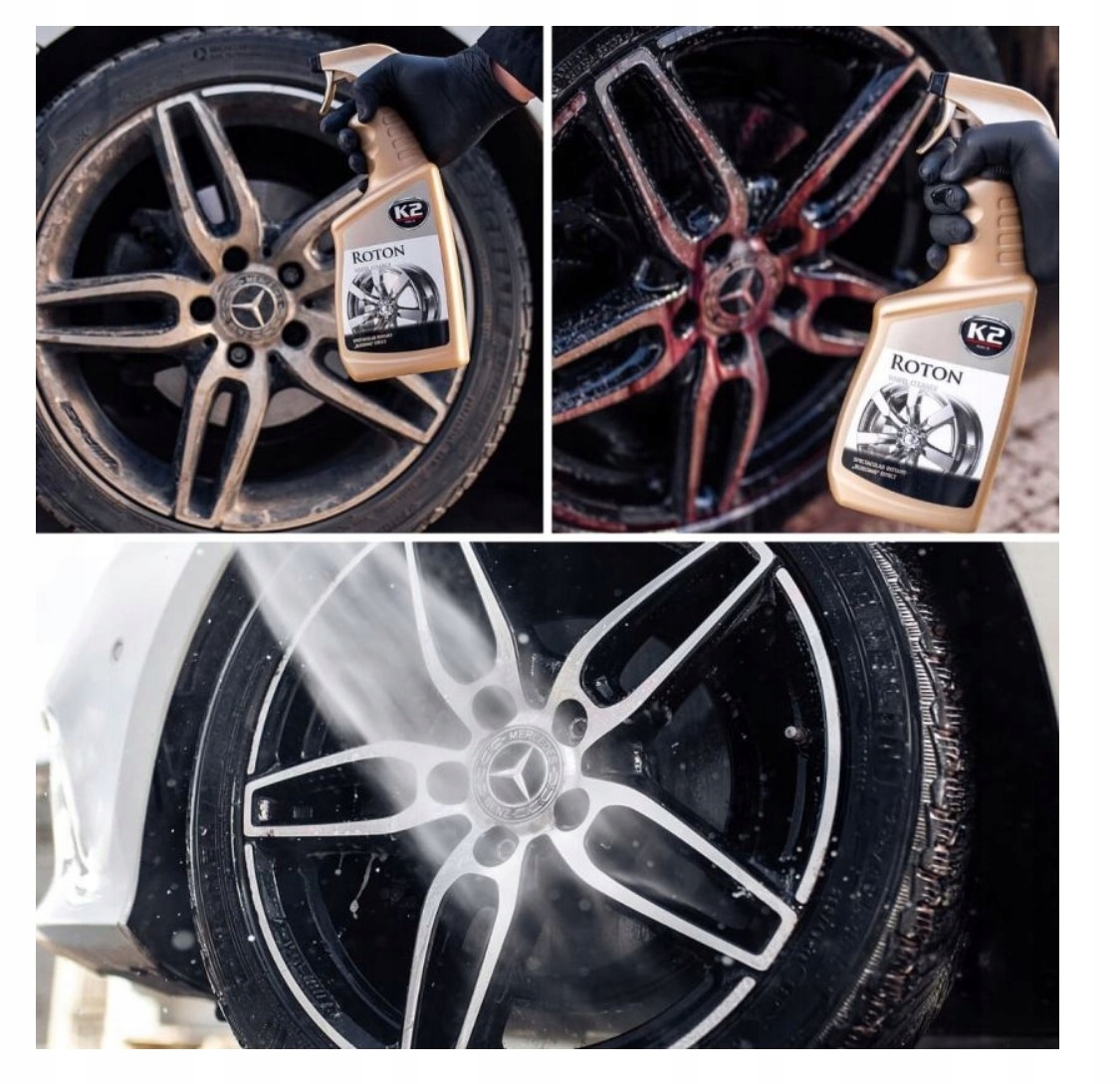 K2 ROTON эффективно удаляет всю стойкую грязь, в том числе отложения на тормозных колодках и дорожную грязь, в результате чего цвет нанесенной жидкости становится красным. Мытье дисков жидкостью происходит быстро, эффективно и результативно и не требует никаких усилий. Грязь удаляется без риска поцарапать очищаемую поверхность.