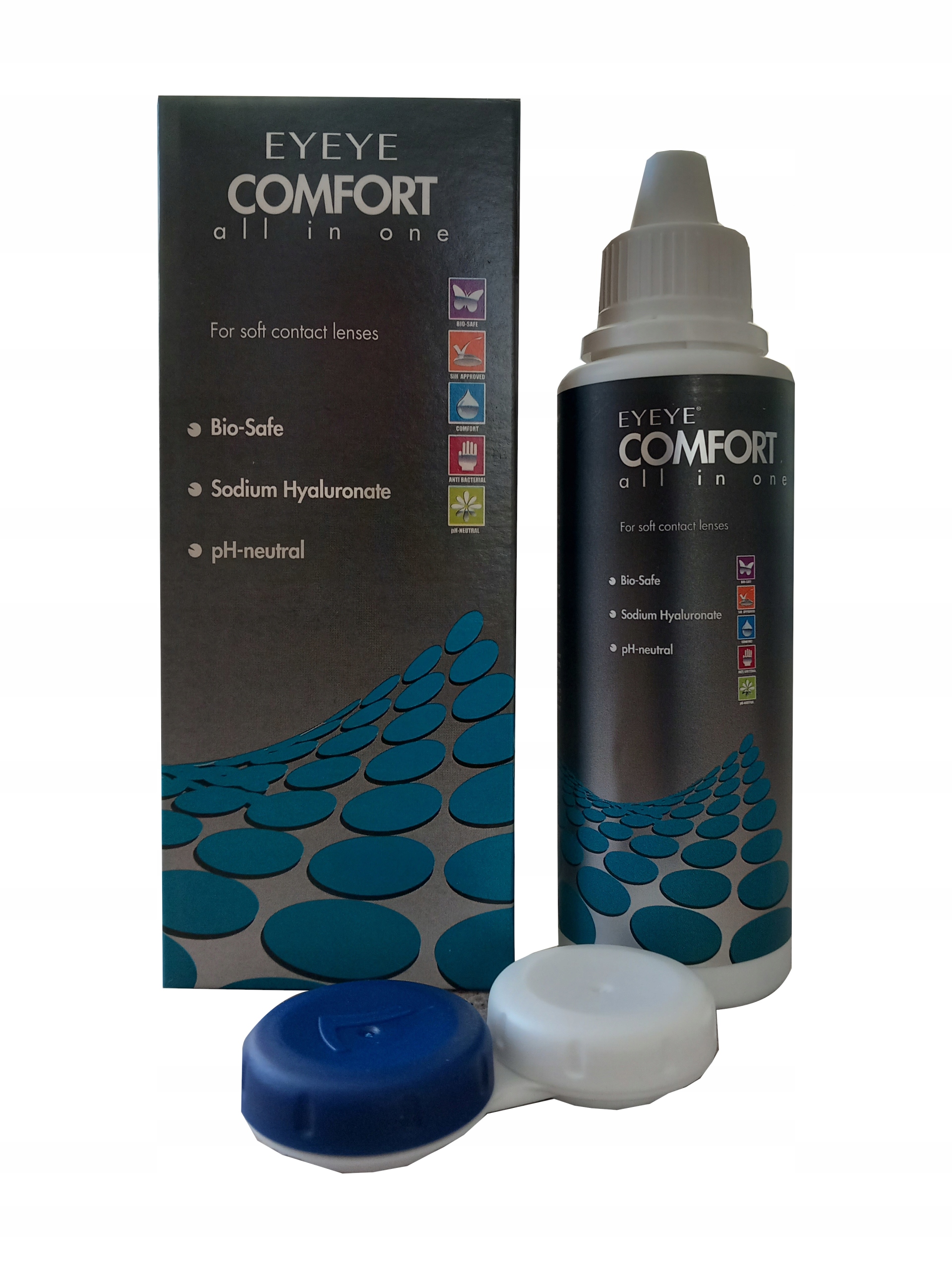 EYEYE I-COMFORT Многофункциональная жидкость премиум-класса с гиалуроновой кислотой для очистки, удаления белковых отложений, дезинфекции, ополаскивания, хранения, надевания и увлажнения мягких контактных линз.