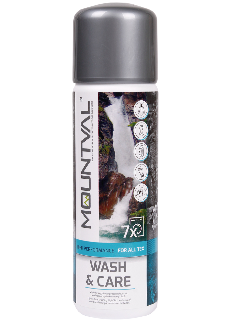 Mountval Wash&Care — современное и эффективное чистящее и моющее средство, предназначенное для одежды, оборудования и аксессуаров из водонепроницаемых материалов. Wash & Care — полностью экологически чистый препарат, 100% биоразлагаемый.
