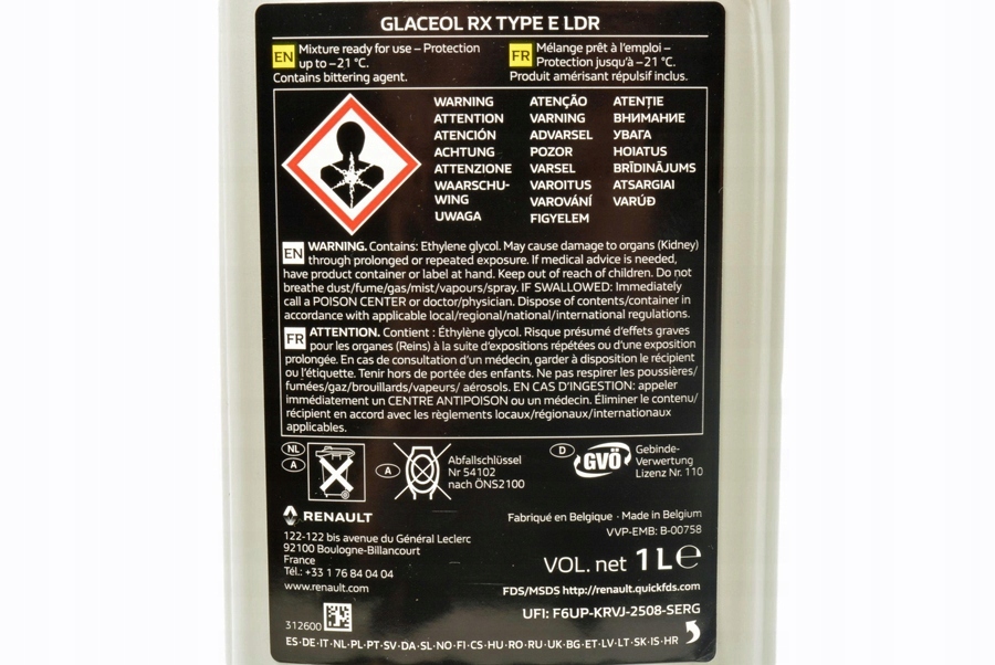 Renault Оригинальная охлаждающая жидкость - Glaceol RX Type E LDR OE 7711947057 H1>