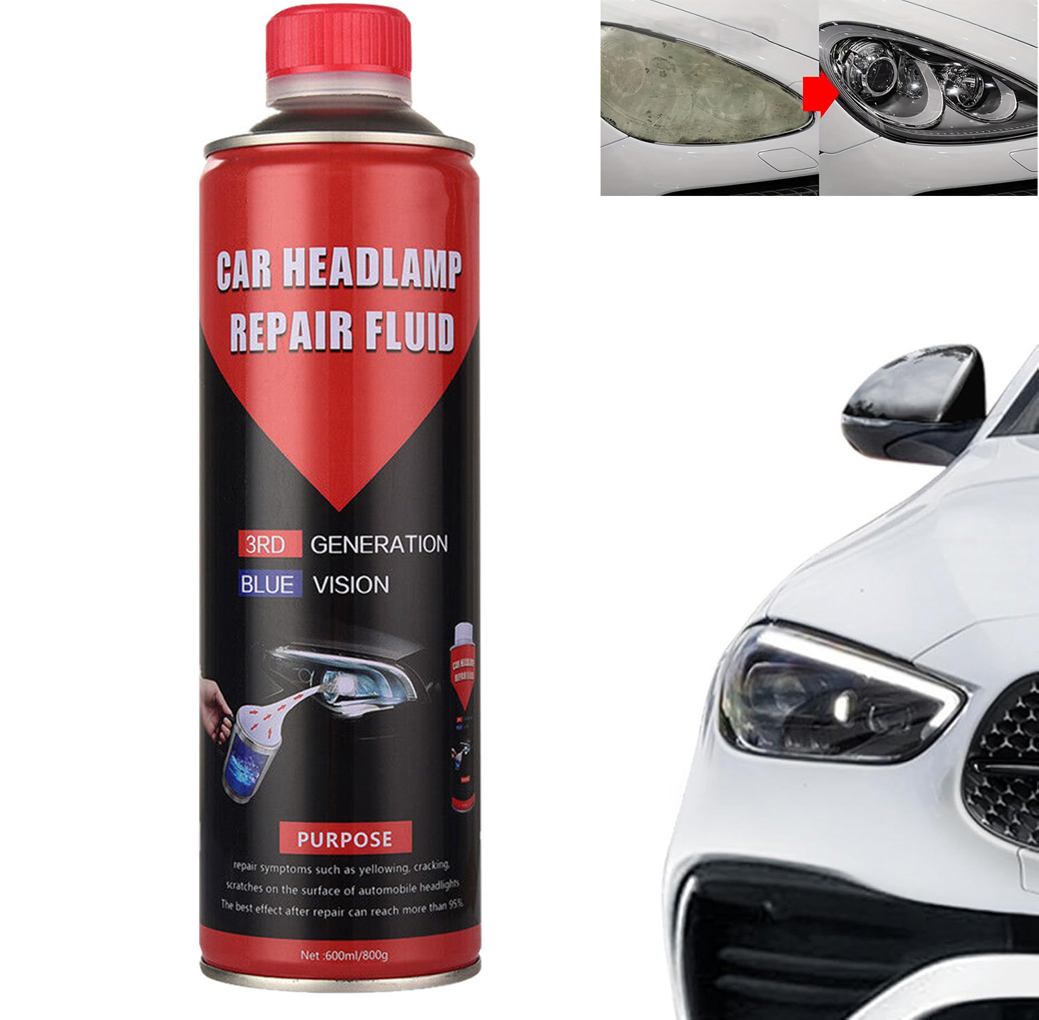 1 порция испаряющейся жидкости для ремонта фар в бутылке для заправки объемом 600 мл (800 г)