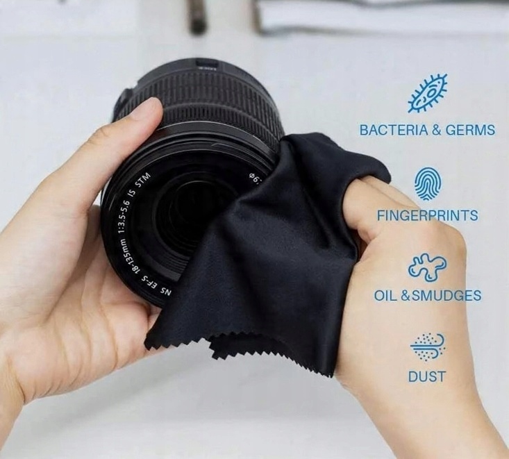 Структура из микроволокон высокой плотности удаляет всю грязь и масляные пятна. Адаптирован ко всем типам линз, включая пластиковые и минеральные с покрытием, а также AR (антибликовые) линзы, для экранов и линз. Можно использовать повторно после стирки.