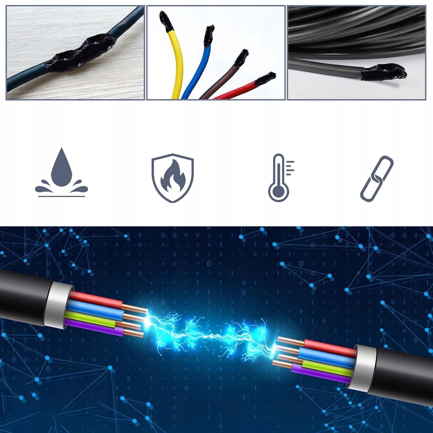 - Strong adhesion to electrical cables