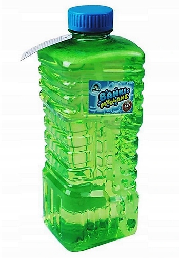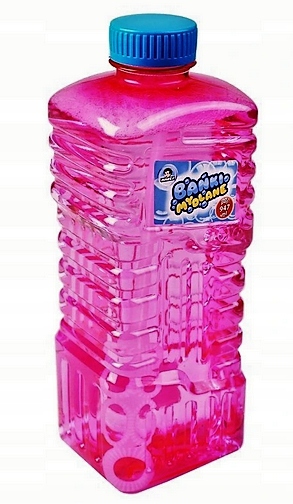 Внутри бутылки находится пластиковая палочка с отверстиями для пузырьков разного размера, благодаря которым, намочив ее и дунув в нее, мы можем создать множество фантастических пузырей.