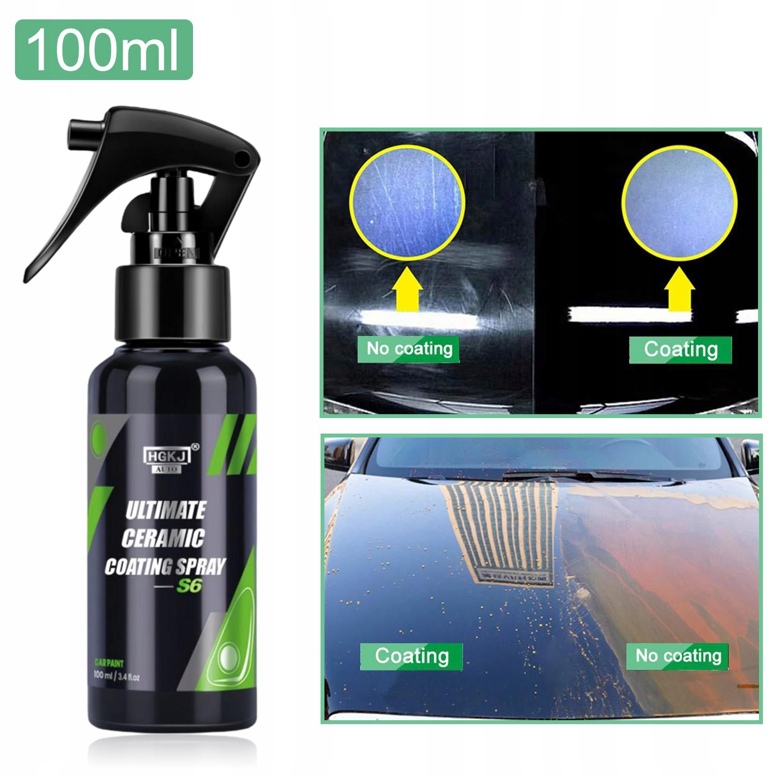 - Спрей для керамического автомобильного покрытия: образует прочный слой покрытия после нанесения покрытия, легко и быстро наносится, делает поверхность вашего автомобиля более скользкой и блестящей.