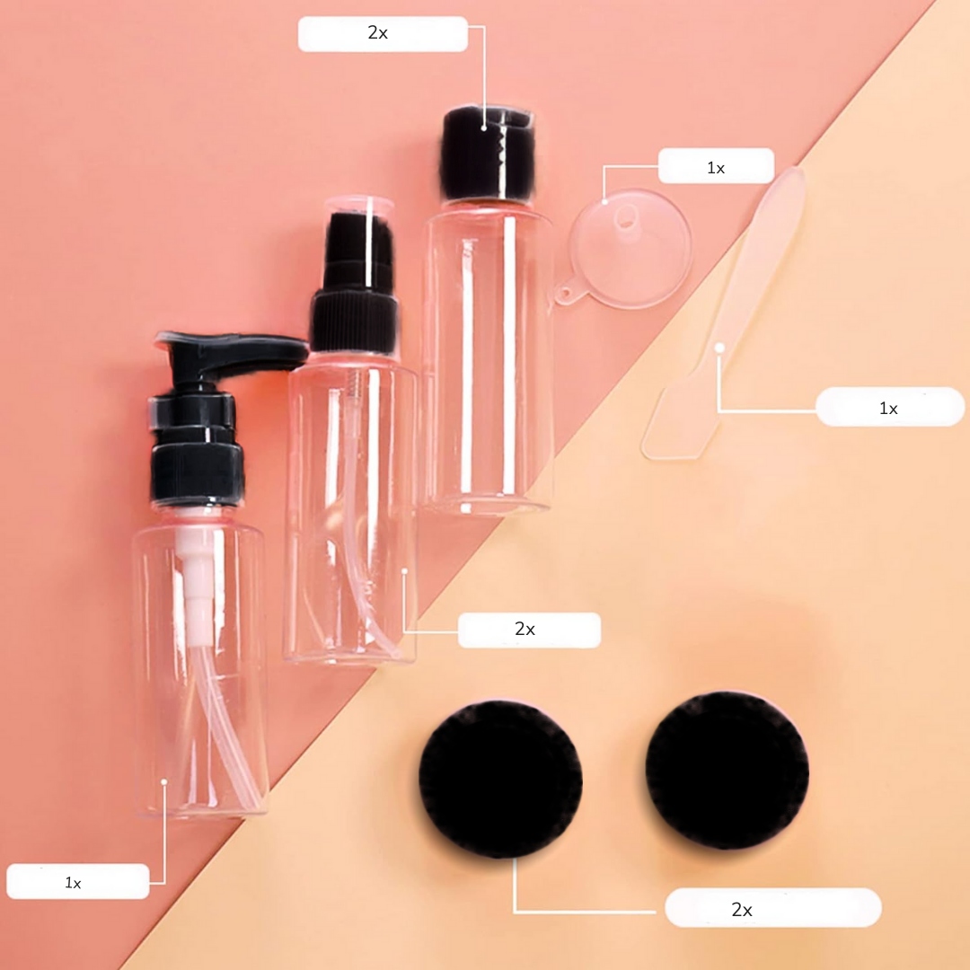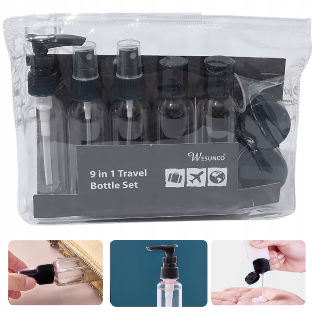 Набор включает в себя элементы 9 + эстетический прозрачный саше , чтобы путешествие было практичным.