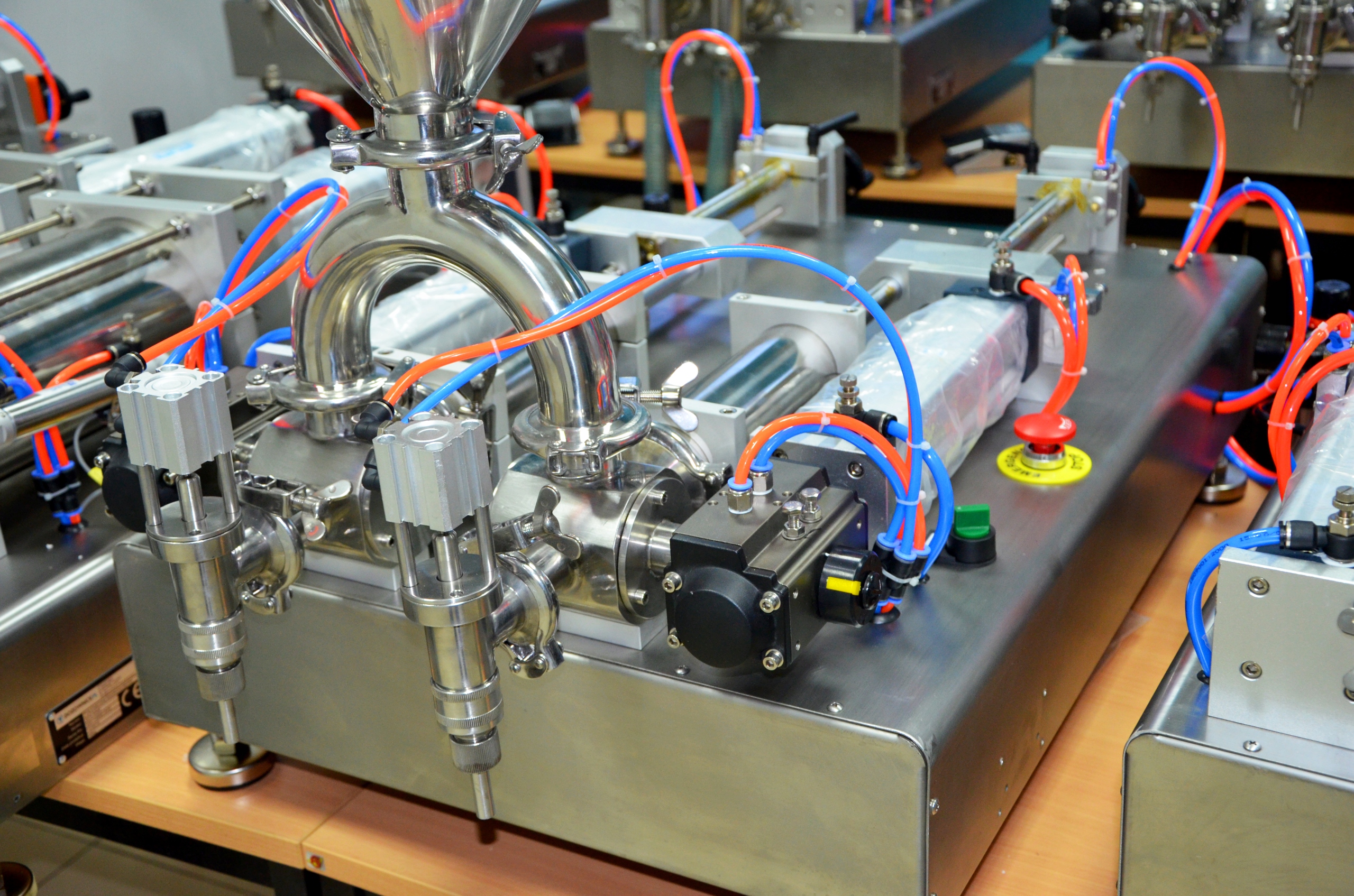 Поршневая разливочная машина подходит для любых веществ (жидких, как вода, и очень густых: кетчуп, клеи, кремы и т. д.). .)