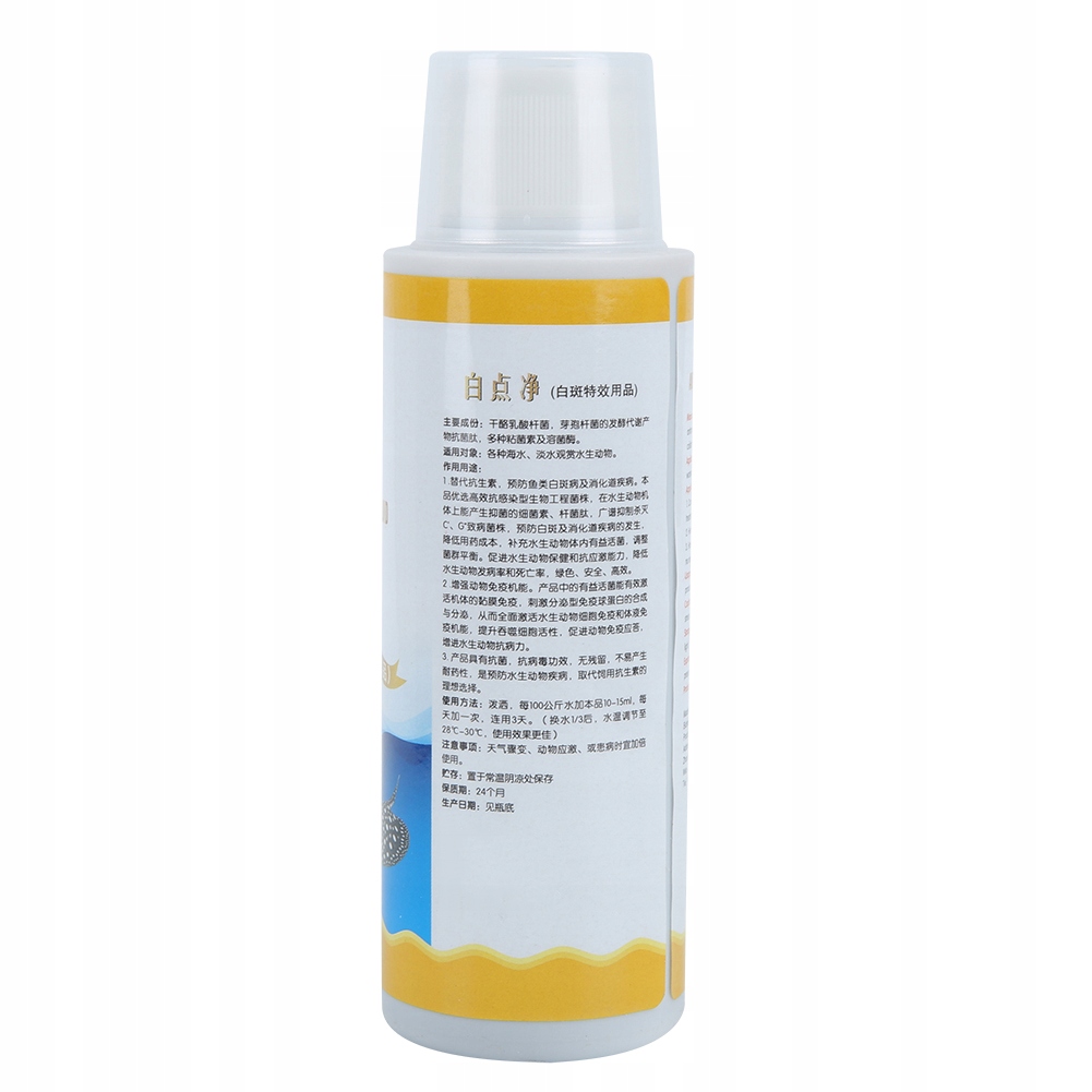 Дозировка: Для розлива добавьте 10-15 мл на 100 кг воды. Добавляйте один раз в день и используйте непрерывно в течение 3 дней (после замены 1/3 воды доведите температуру до 20-30 ℃ для лучшего эффекта)