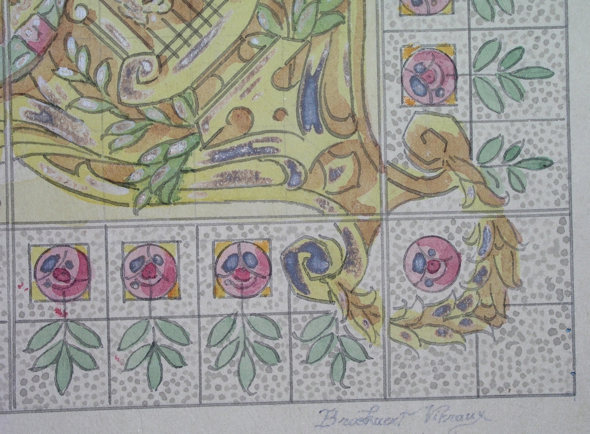 1900 РЕДКОСТЬ оригинальный СЕСЕССИЯ МОДЕРН дизайн ВИТРАЖ ЖОРЖ БРОКЕРТ