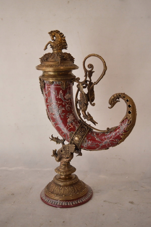 РІГ ДОСТАТКУ з порцеляни - червоний кутий з бронзи