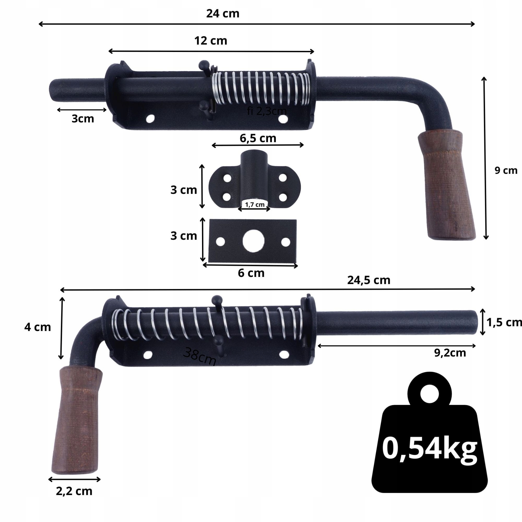 БОЛТ 220 мм ПРУЖИННЫЙ, ДЛИННЫЙ, УЗКИЙ ЗАДВИЖКА С ПОРОШКОВЫМ ПОКРЫТИЕМ, ЧЕРНЫЙ