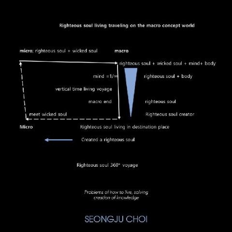 Путешествие праведной души из микроконцептуального мира в макроконцептуальный мир, а затем безопасное возвращение к праведной душе, живущей в месте назначения, с завершением путешествия на 360 (градусов). Праведная душа, живущая вертикально, путешествует во времени, помогая праведной душе, живущей в пункте назначения, создателю создания знаний. Праведная миссия мирового путешествия концепции макроса души; встречает возлюбленного праведной души, занимаясь настоящей любовью со злой душой возлюбленного, как завершение макропутешествия, праведная душа является создателем праведной души, которая будет миром макроконцепции путешествия.