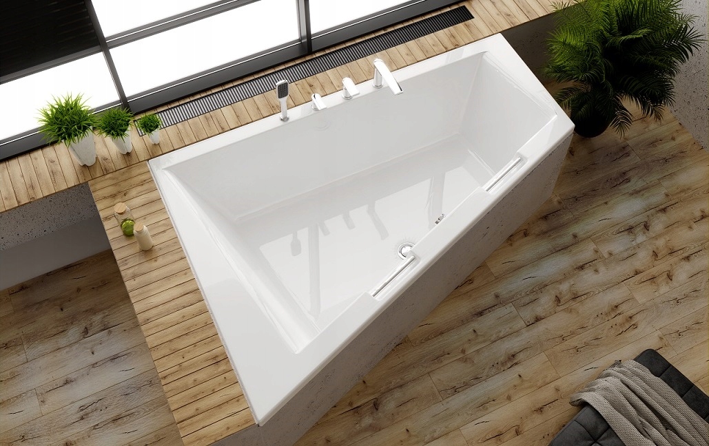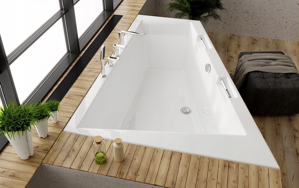 Асимметричная ванна Doppio правая 180x130 от Riho + ПЕНОСТРОИТЕЛЬ + АВТОМАТИЧЕСКИЙ СИФОН + НОЖКИ
