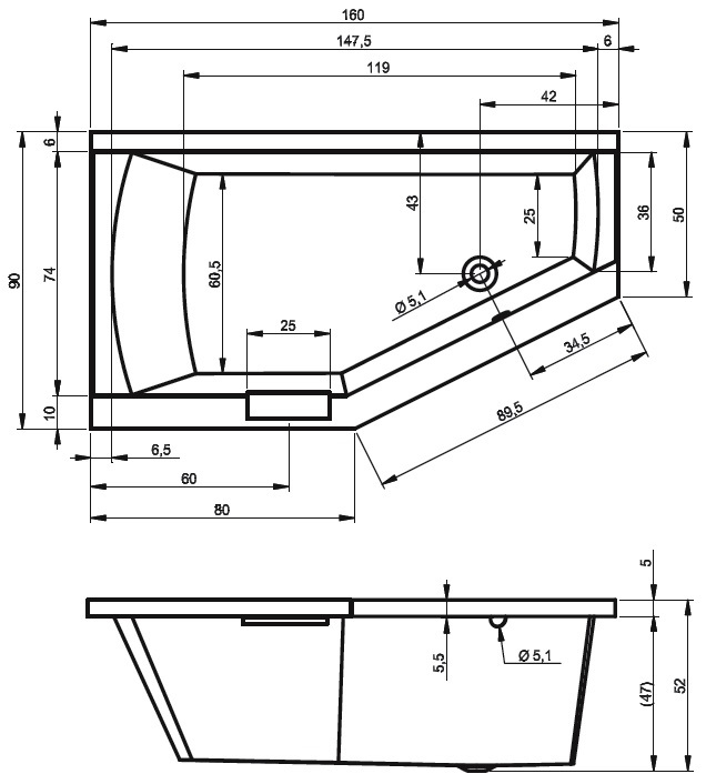 Поверхность ванны гладкая и непористая, поэтому она остается гигиеничной и недорогой в уходе даже после многих лет использования. Чтобы сохранить ее в чистоте, достаточно протирать ее влажной тряпкой после купания.