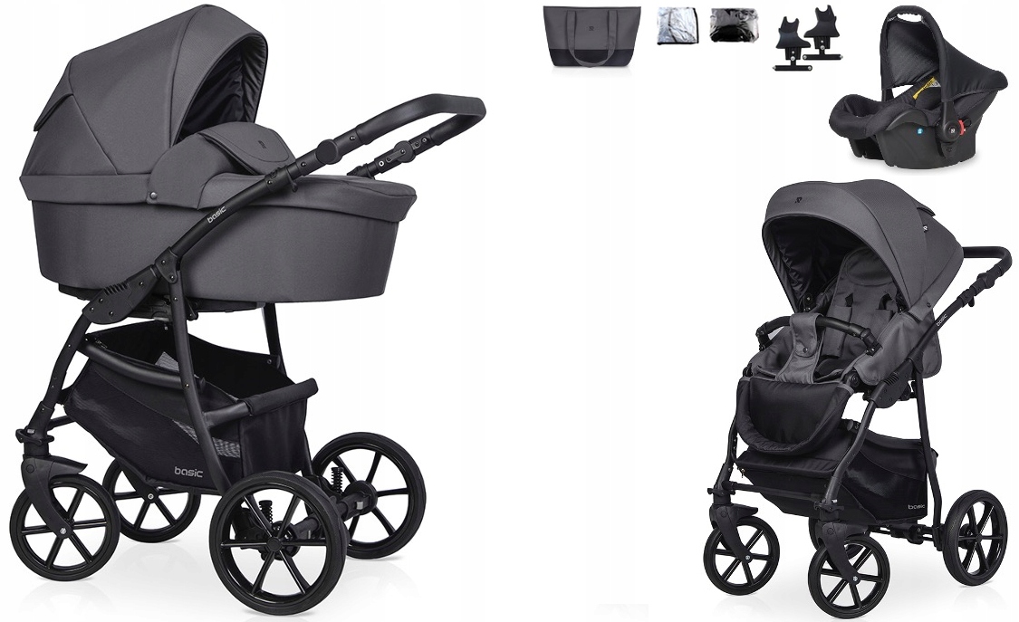 RIKO BASIC — многофункциональная коляска, поэтому в комплект входит сиденье для коляски и гондола. Это так называемая коляска 2 в 1. Дополнительно можно приобрести автокресло RIKO и таким образом создать комплект 3 в 1. Компания «РИКО» также предлагает возможность приобретения адаптеров для автокресел других известных брендов с соединениями типа Maxi Cosi.