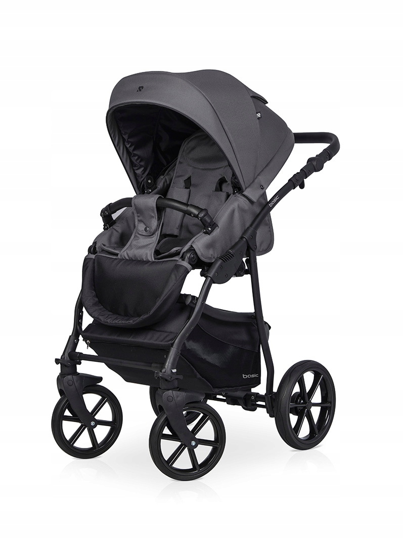 Гондола коляски BASIC имеет хлопчатобумажную подкладку и матрас. Система регулировки спинки позволяет приподнять спину и голову ребенка, когда, например, мы спускаемся с коляской с горки. Таким образом мы избежим ситуации, когда голова ребенка окажется ниже бедер. При стоянии на земле гондола имеет функцию качания и стабилизирующие ножки.