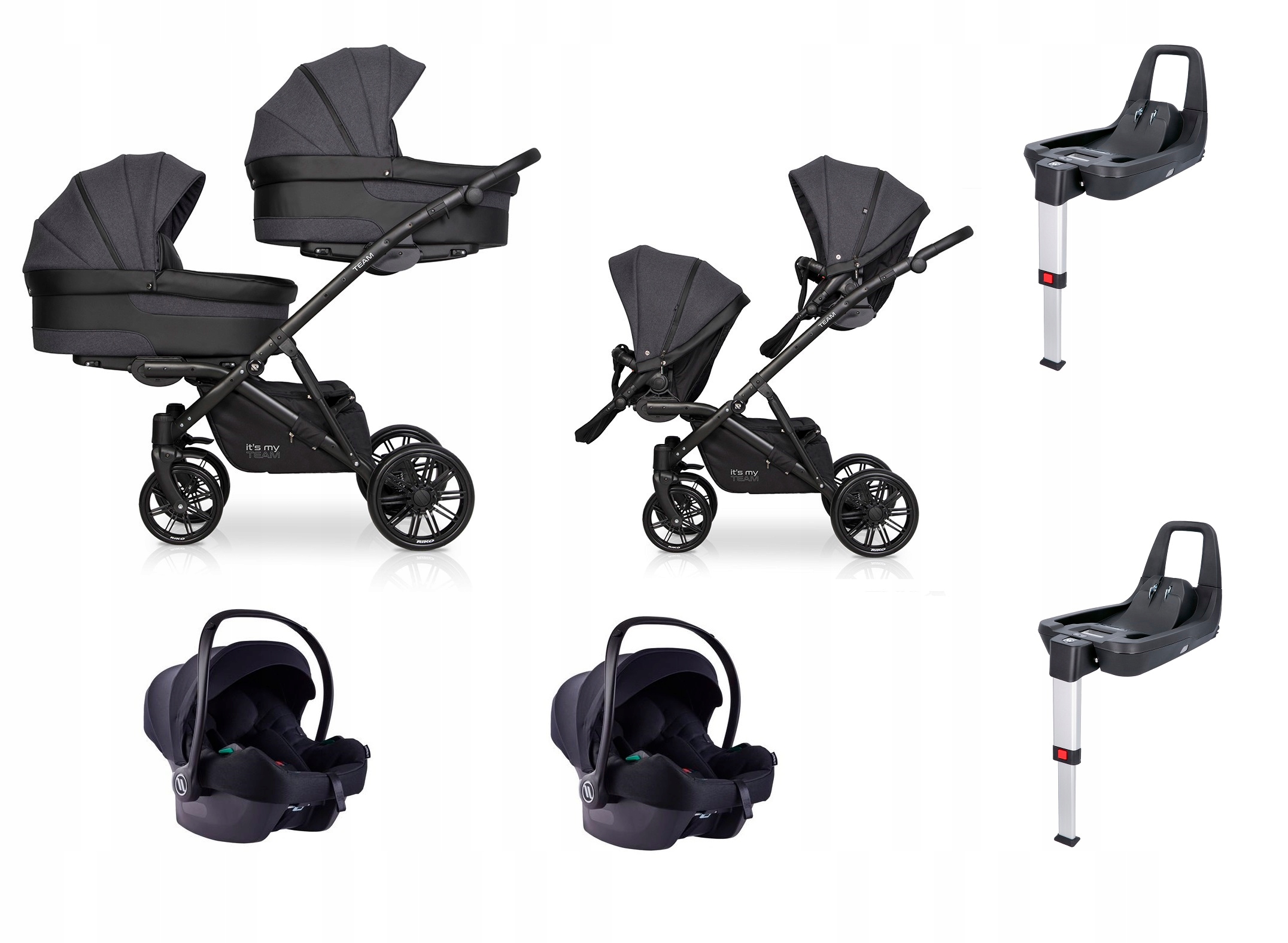 Коляска для близнецов Riko Team 3в1 с сиденьями COSMO + IQ 2.0 C BASE