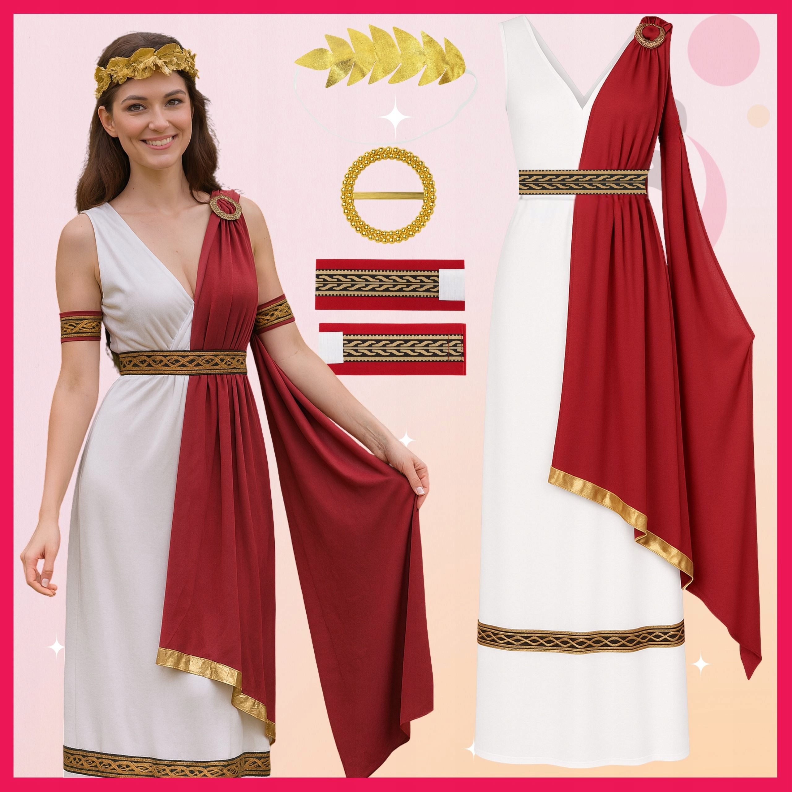 ⭐ Почувствуйте себя настоящей богиней Древнего Рима — элегантная тога с красной драпировкой и золотыми деталями заставит вас блистать на любой вечеринке!