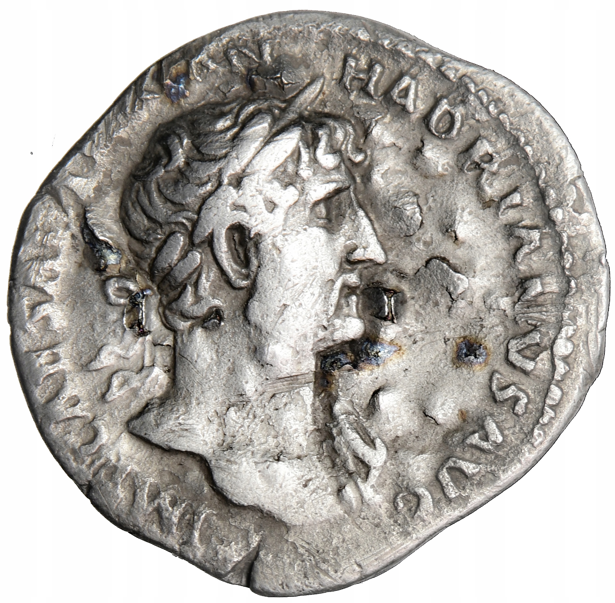 Ав. ИМП ЦЕЗАРЬ ТРАЯН АДРИАНВС АВГ, бюст императора в лавровом венке вправо.