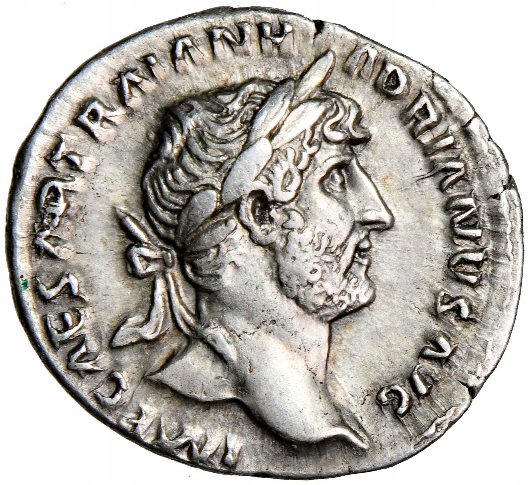 Ав. ИМП ЦЕЗАРЬ ТРАЯН АДРИАНВС АВГ, бюст императора в лавровом венке вправо.