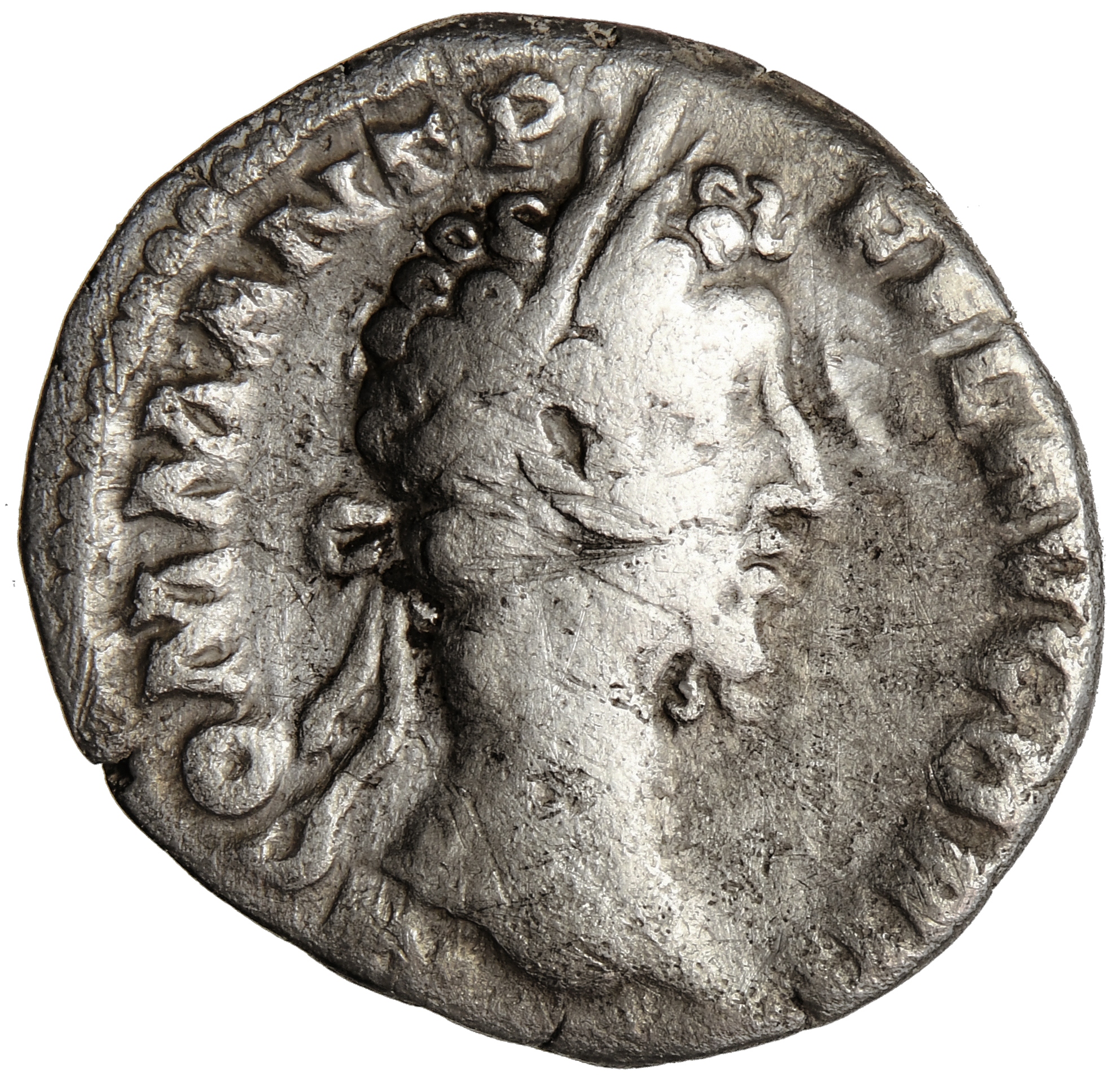 Ав. M COMM ANT P - FEL AVG BRIT, бюст императора в лавровом венке справа.