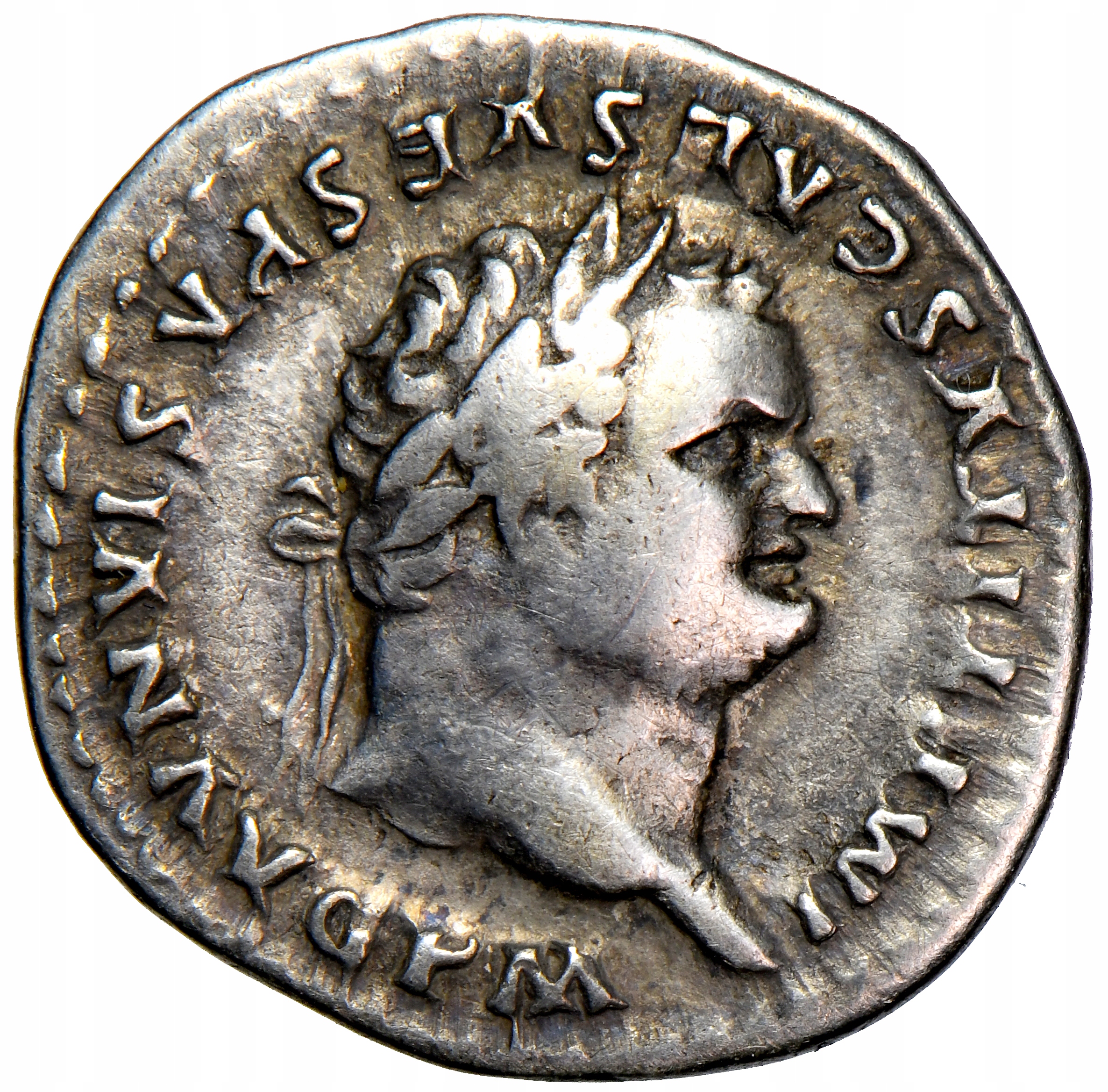 Ав. IMP TITVS CAES VESPASIAN AVG PM, голова императора в лавровом венке справа.