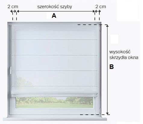 К ширине стекла добавьте (А) по 2 сантиметра с каждой стороны, чтобы получить правильную ширину рулонной шторы.